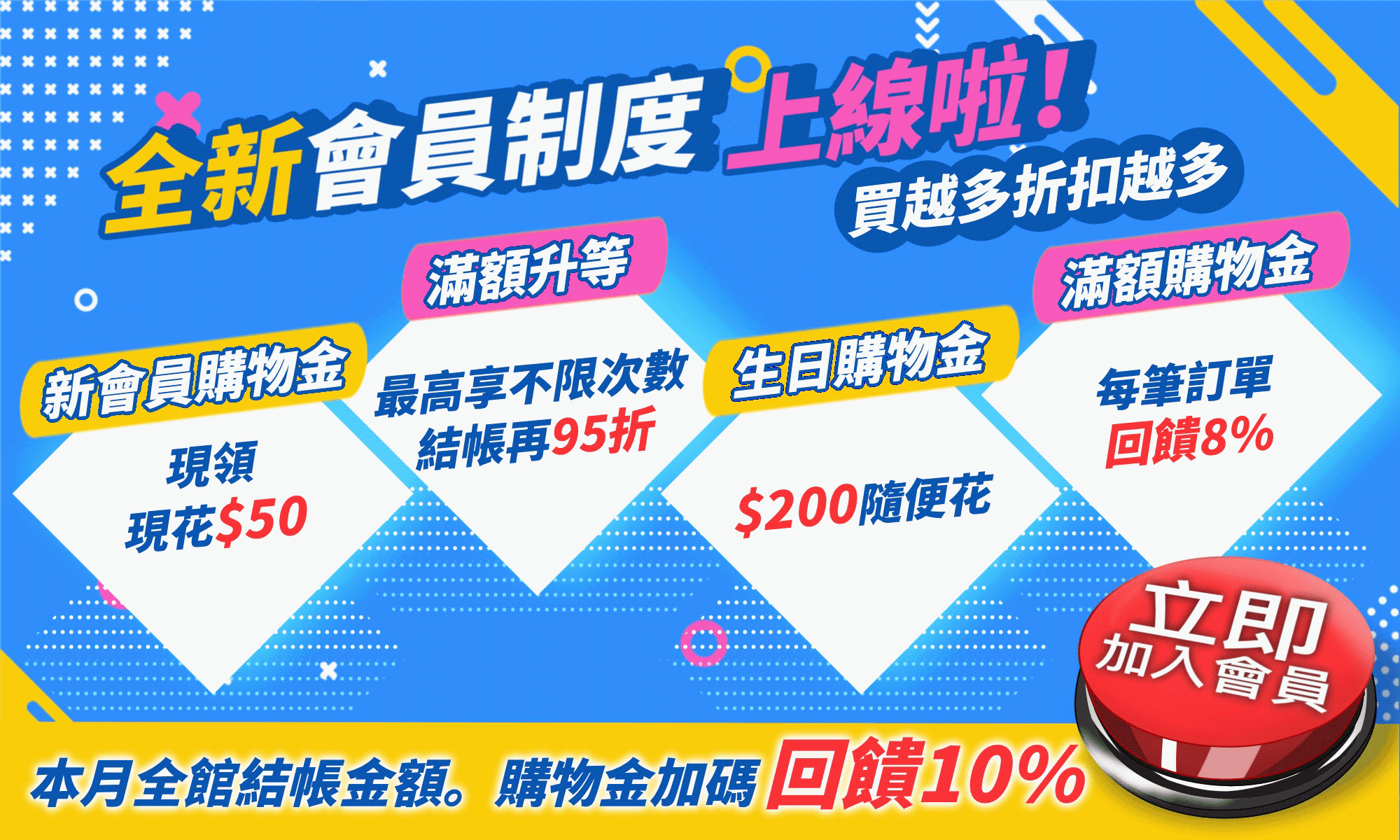 🌙 新會員 首次註冊贈送$50購物金,當筆折抵