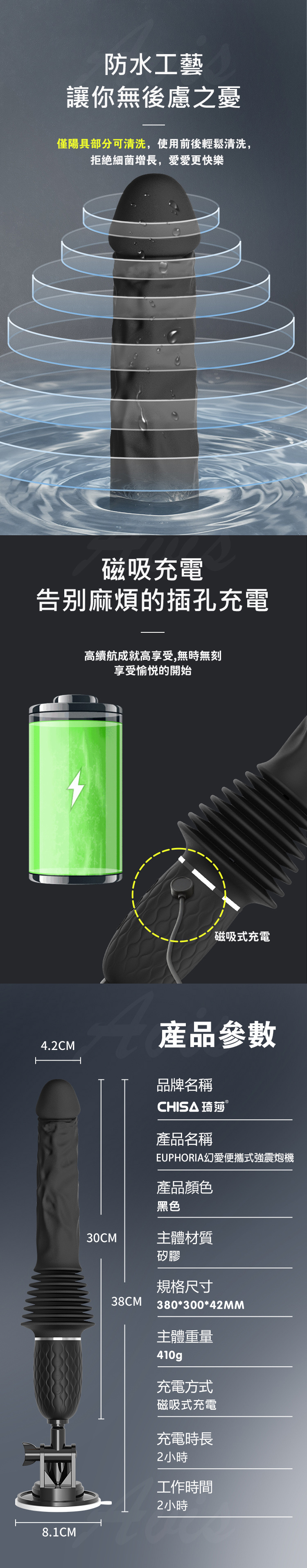 .產品名稱:CHISA|寶劍 伸縮+震動|加溫遙控逼真老二吸盤炮機-黑