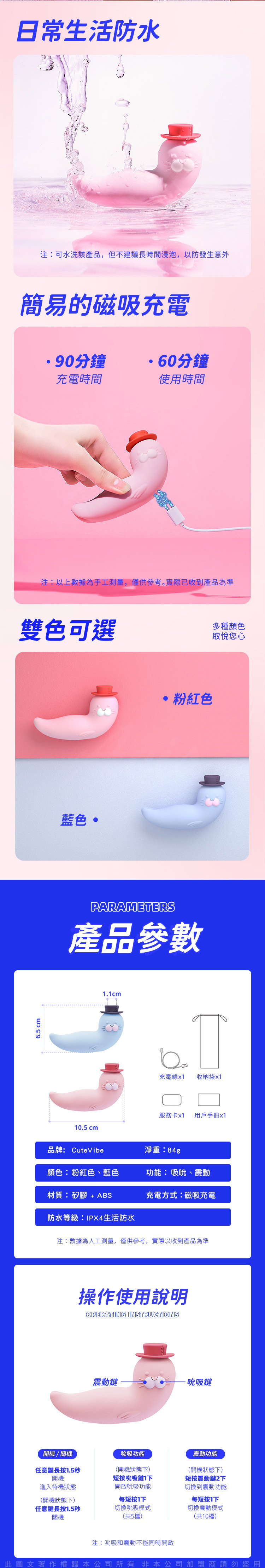 .名稱:Cutevibe-小嗨豹雙用吸吮震動按摩器-藍色