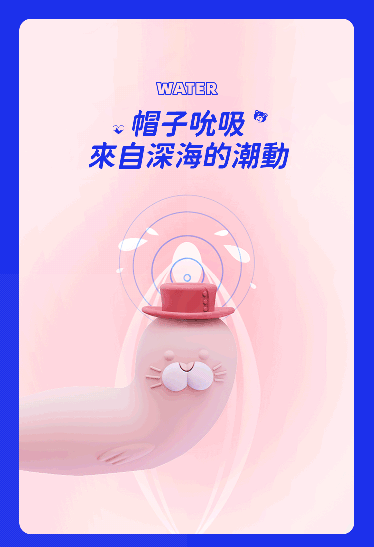 紳士小海豹樣子斯文,暗藏玄機,帽子有高超吸啜功能,讓你C點酥麻到欲罷不能