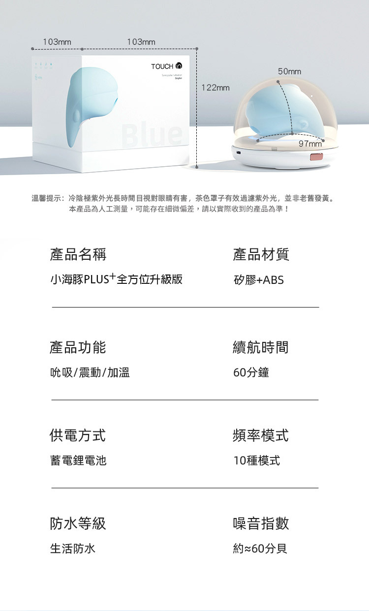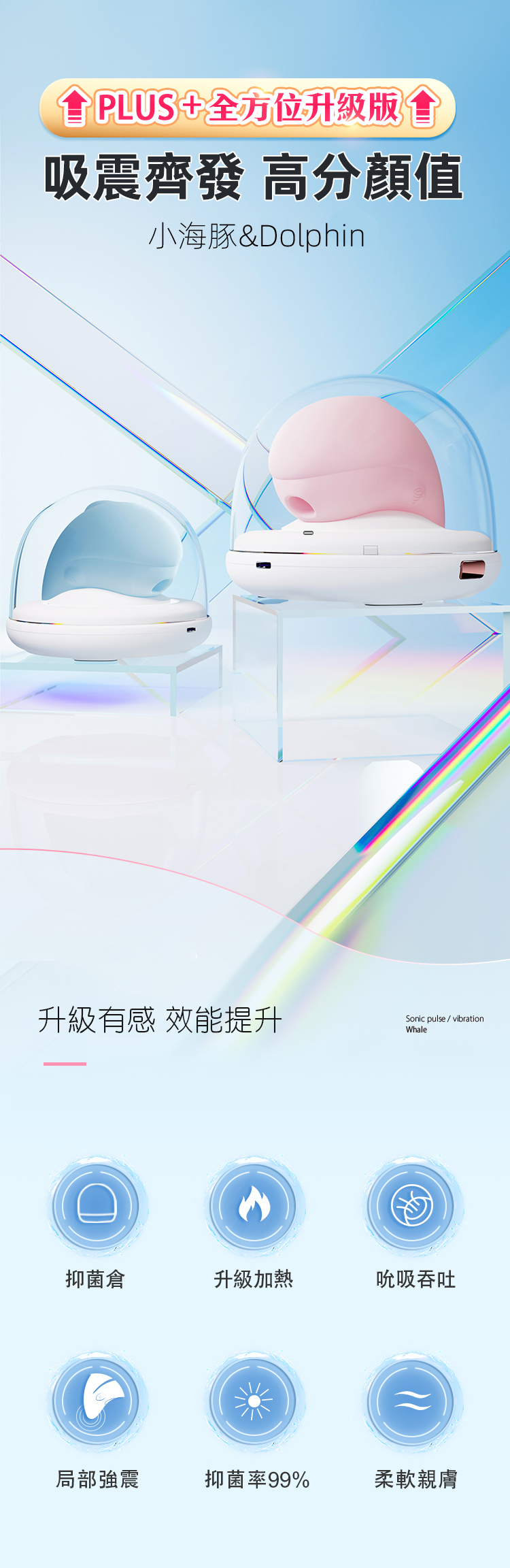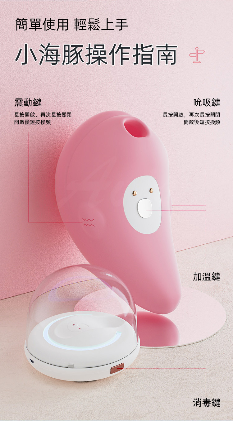 升級版噴水小海豚,雙重享受來襲!嘴巴吸吮、尾巴震動的完美搭配,給你身心愉悅的雙重刺激。加上磁吸式充電底座,隨手放置即可開始充電,蓋上蓋子後更自動啟動紫外線殺菌燈,有效消除表面細菌與異味,保持每次使用的清潔衛生。