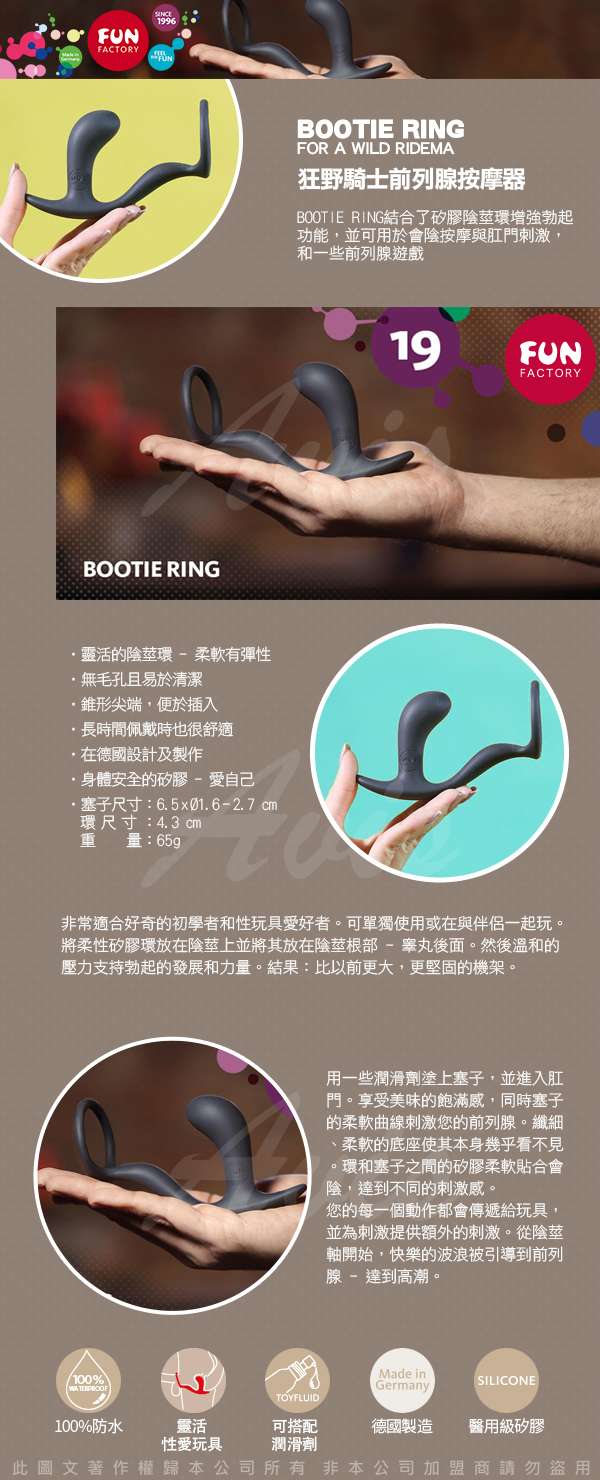 .商品名稱:德國Fun Factory Bootie Ring 情趣環後庭塞-黑
