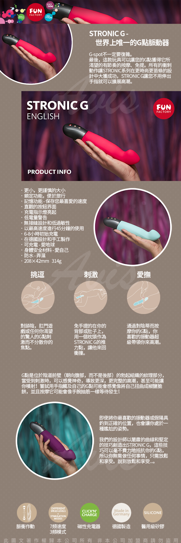 ▶專為G點高潮設計,全球獨家專利的擬真前後擺動、深入抽送、推進插入陰道的重金屬推進器