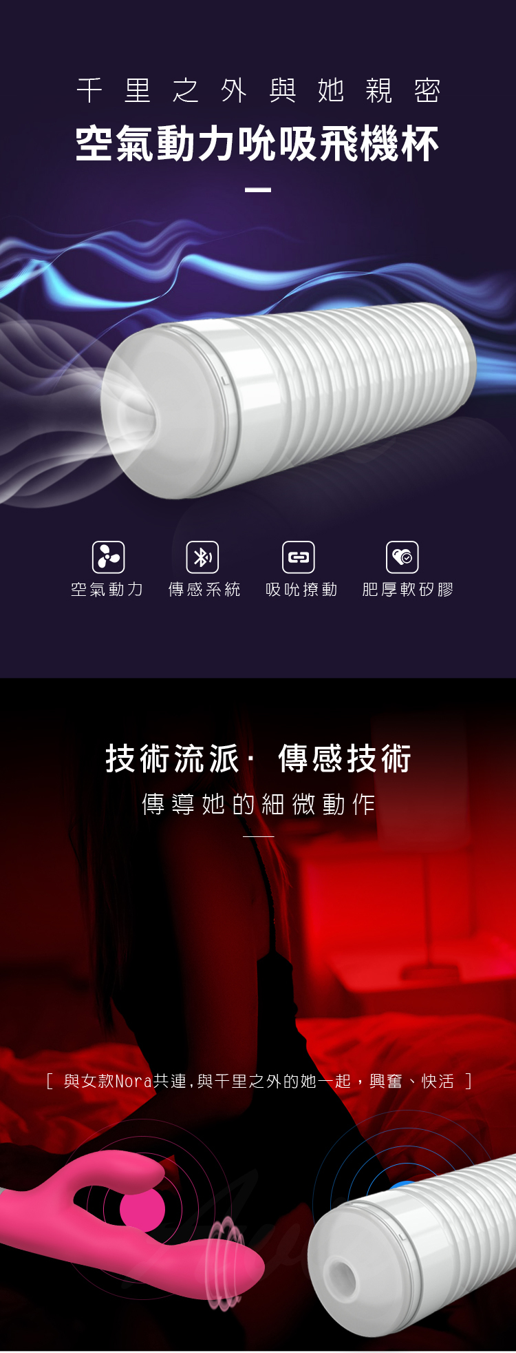 使用Nora的同時,Max/Max 2裡的氣囊就會開始收縮和擴張,他會感受到陰道擠壓的真實感。隨著Nora的旋轉速度的變化,Max/Max 2的氣囊收縮會跟著變化。