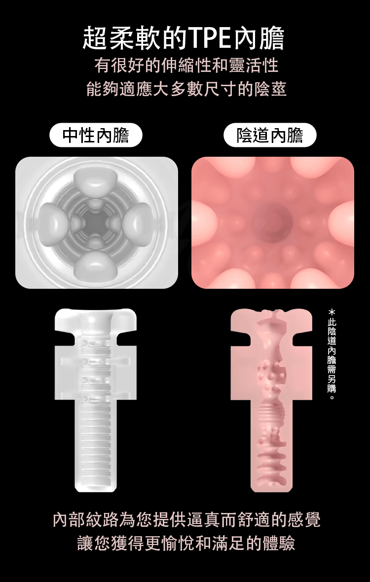 內膽採用超柔TPE材質,通道擬真、刺激感升級