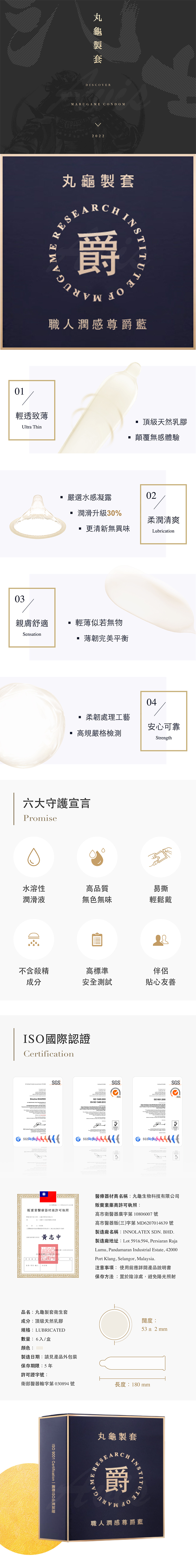 丸龜製套|職人潤感尊爵藍(水潤型)|53mm保險套 -6入盒裝