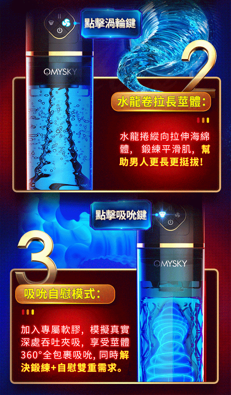 ▶三種鍛鍊:龍捲拉伸、水浴、吸吮