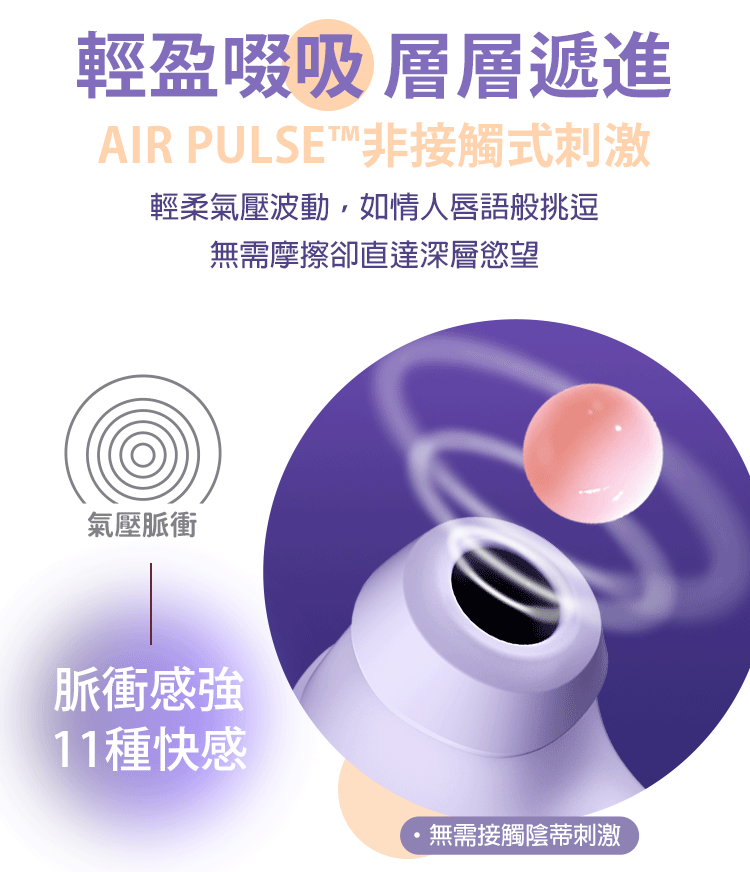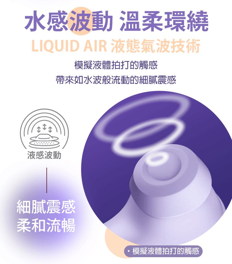搭載革命性的 Liquid Air 液態氣波技術,透過專利薄膜模擬出水流律動的層次感,打破傳統吸吮器常見的乾澀與單一頻率