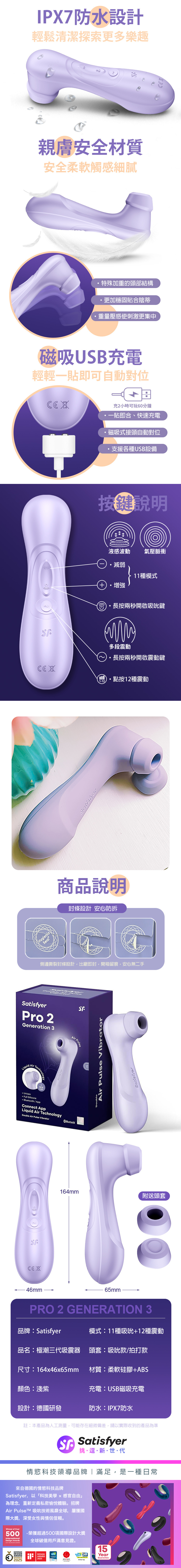 .品名:Satisfyer|Pro 2 Generation3|極潮三代 吸吮陰蒂震動器 丁香紫
