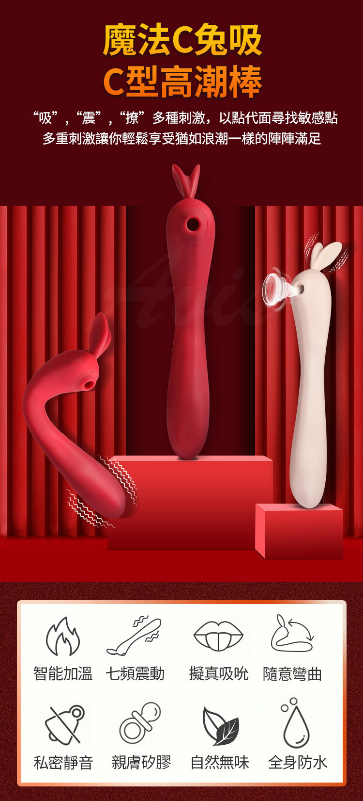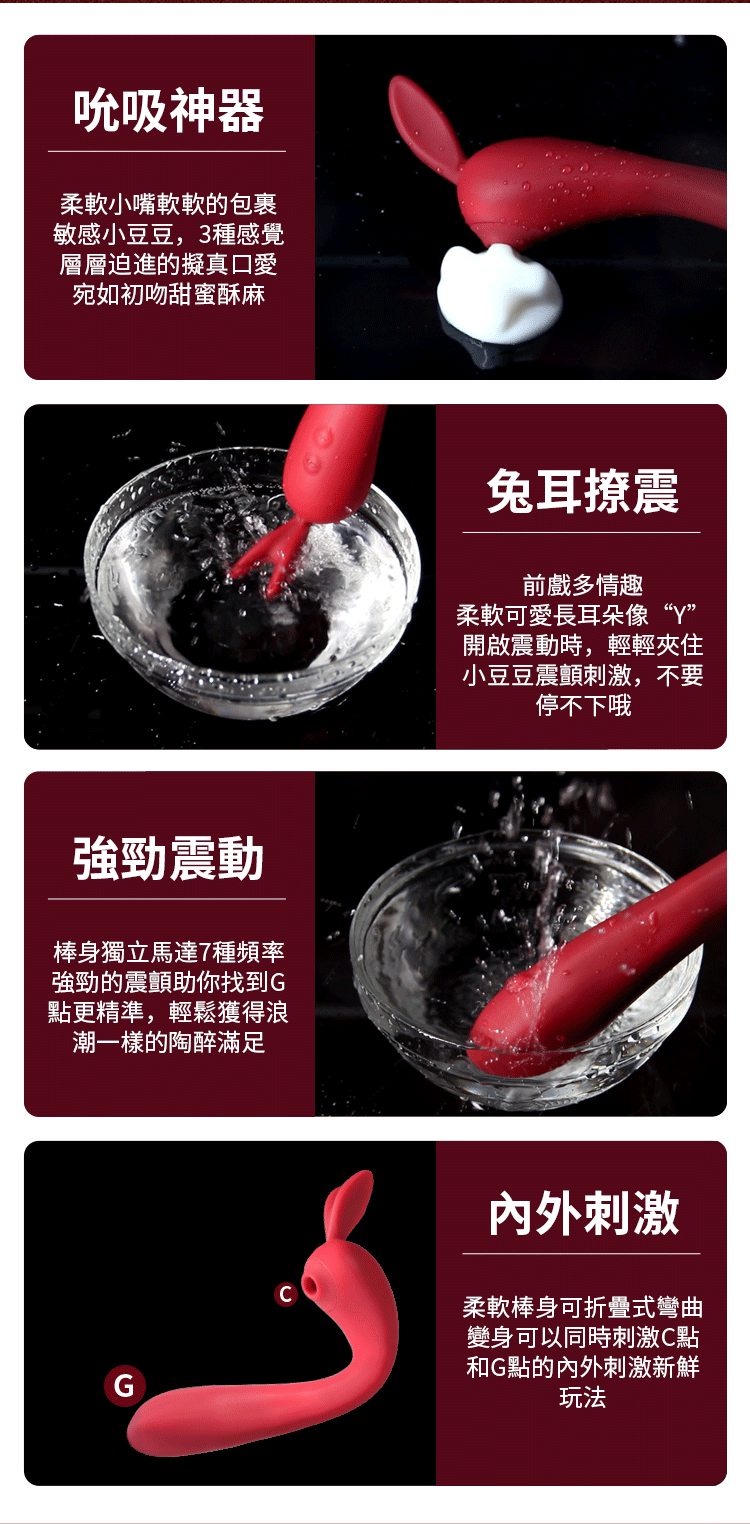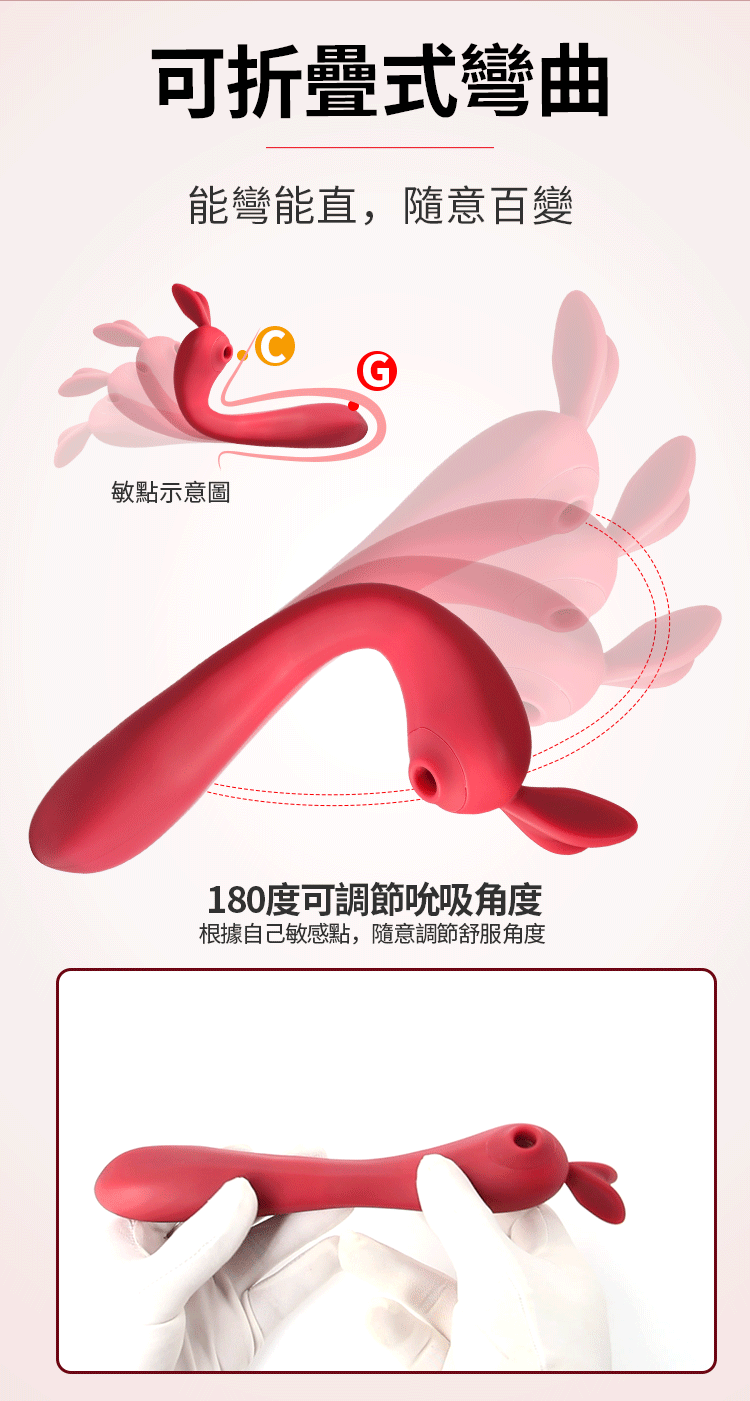 ▶雙頭刺激:柔軟棒身可折疊式彎曲,同時刺激C點