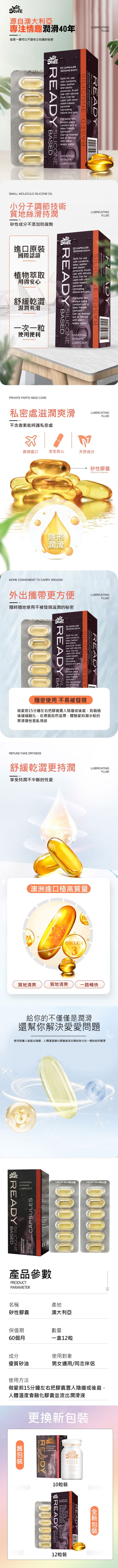 來自澳洲 Wet Stuff 的 Ready 內填式矽性潤滑液膠囊是一款設計獨特、效果持久的體內潤滑概念!只要事前將膠囊放進體內,開戰時就可以即時進入狀態!