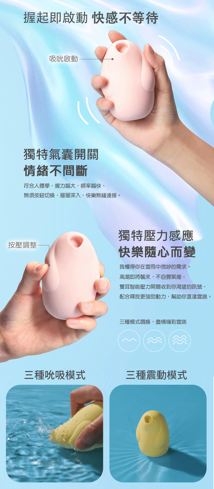 ▶智能壓力開關:感測高潮來臨前的手指力度,自動加大吸吮力