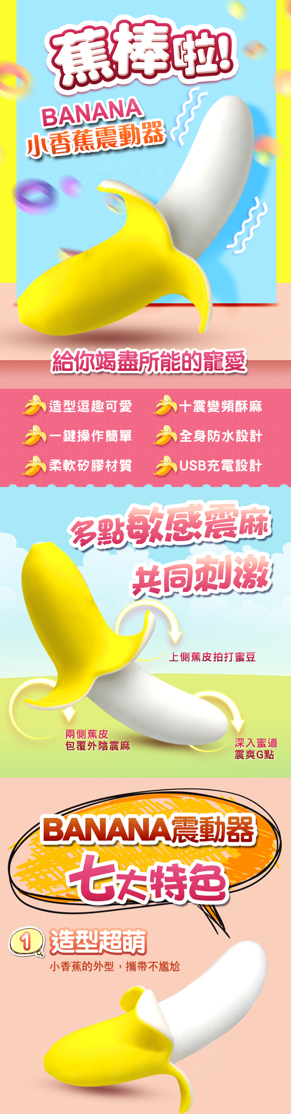 ▶內外雙攻:三片蕉皮全面包覆外陰、陰蒂