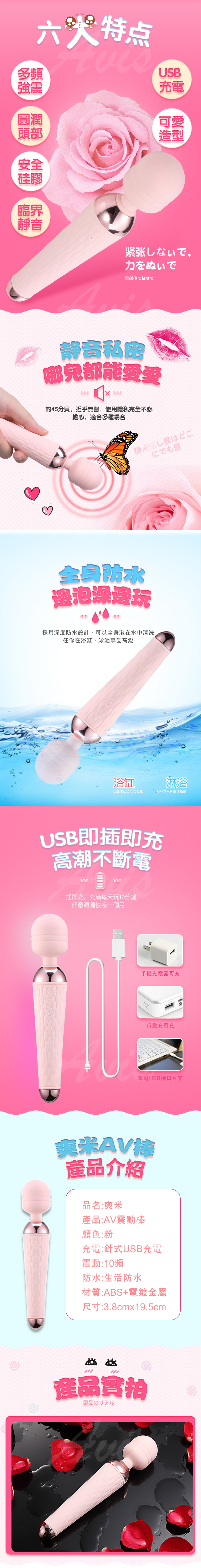 【清洗注意事項】 【收納注意事項】 .商品名稱:爽米 甜蜜蜜 10頻AV按摩棒 USB充電 粉 |