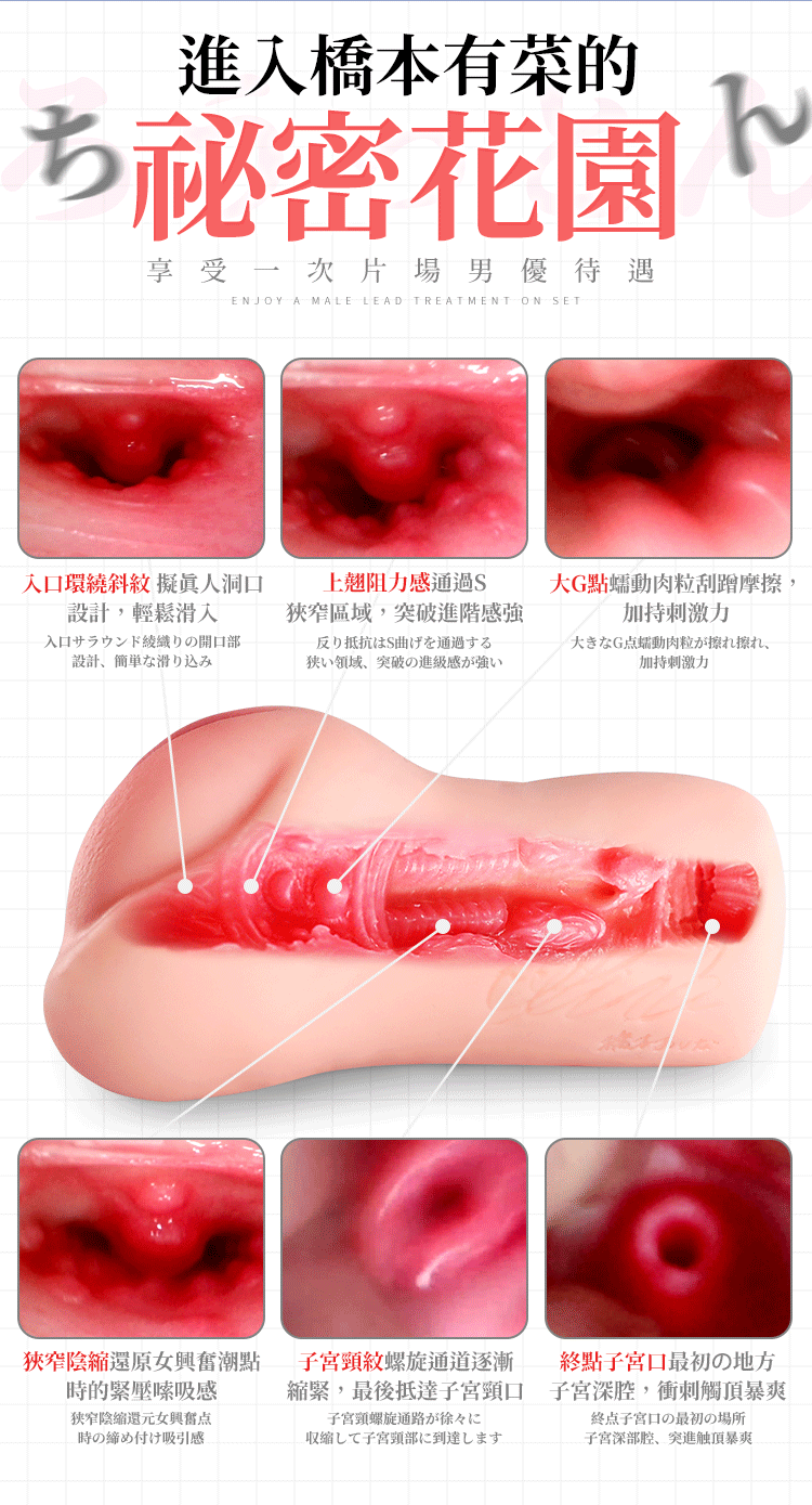 通道中段設計了強烈的上翹阻力紋理,宛如實際陰道深處的收縮帶來層層緊逼,推進時能感受到突破的強烈摩擦與擠壓感。