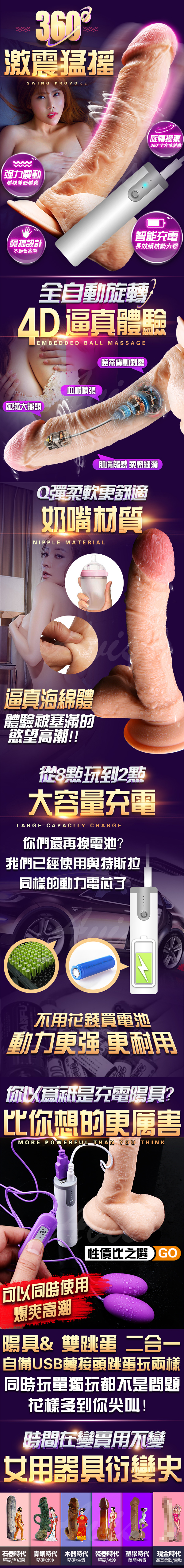仿真陽具+雙馬達抽插+搖擺旋轉,一棒抵三棒,讓妳高潮翻倍!